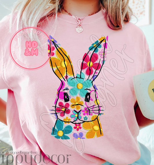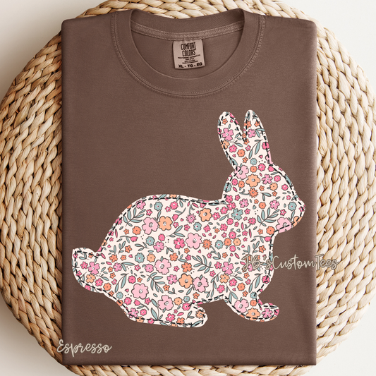 Floral Faux Embroidery Bunny Comfort Colors Tee
