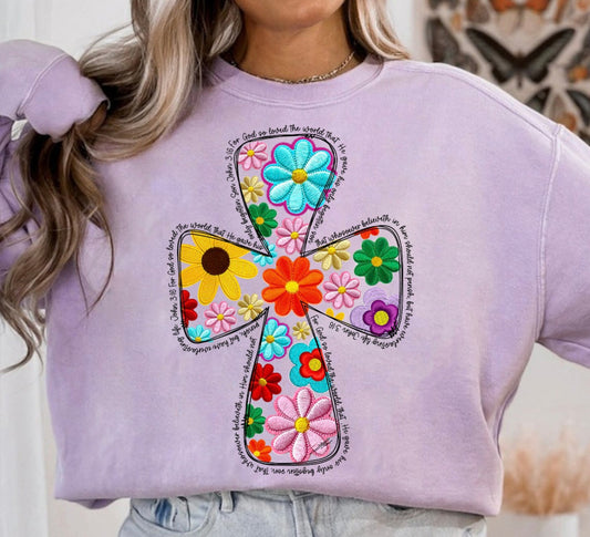 Floral Cross Comfort Colors Tee