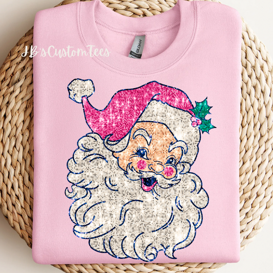 Faux Sparkly Pink Retro Santa Sweatshirt