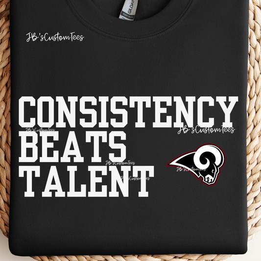 Owasso Rams 6th Grade Black (front) - Consistency Beats Talent (back) YOUTH