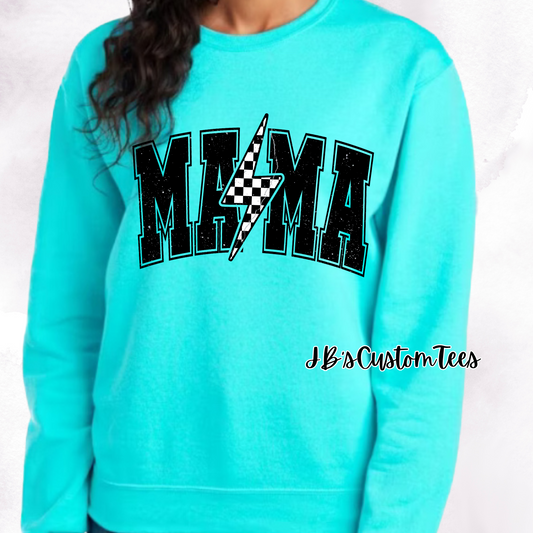 Mama Checkered Lightening Bolt Gildan T-Shirt or Sweatshirt